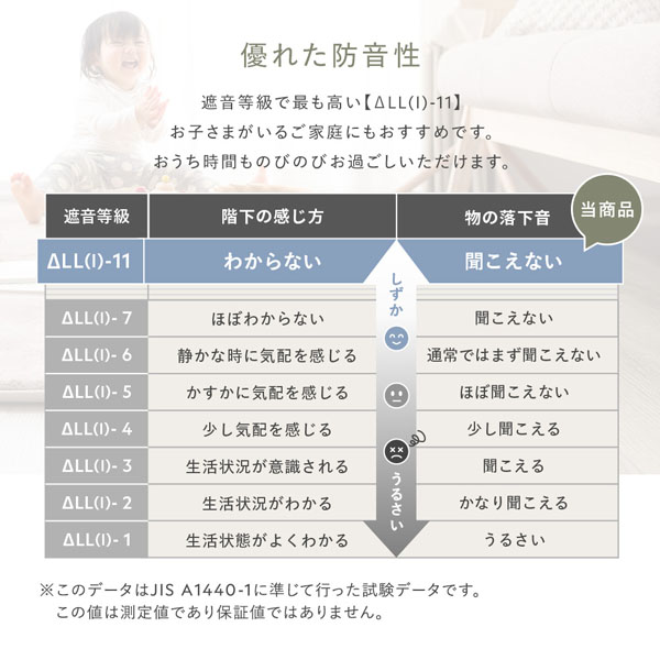 厚みのあるラグの設計で、階下に足音や物音が響きません。