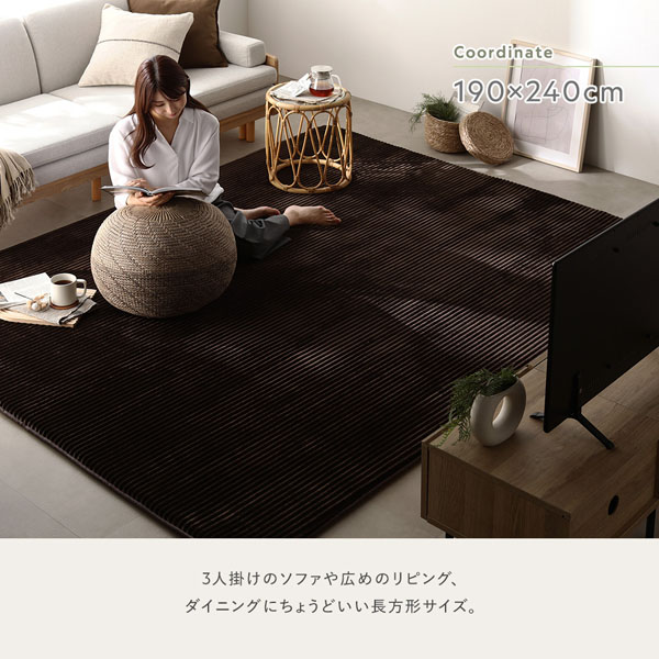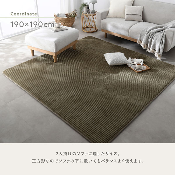 コーデュロイ ラグ 約190×240cm オリーブ 抗菌 防音 滑り止め加工 ホットカーペット 床暖房対応 手洗いOK ラグマット 絨毯